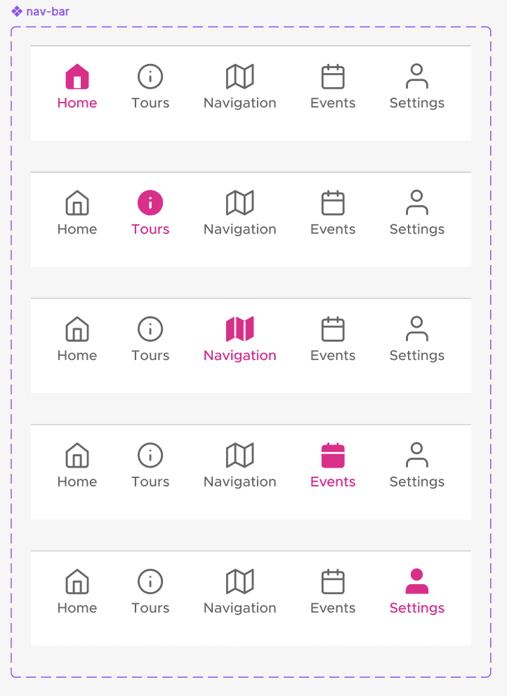 In short, improving the navigation experience became our priority. To address this core problem, we needed a system that seamlessly connects exhibition discovery with clear wayfinding. Therefore, we redesigned the information hierarchy of OAG Explore and organized it into five main pages: Home, Tours, Navigation, Events, and Profile.