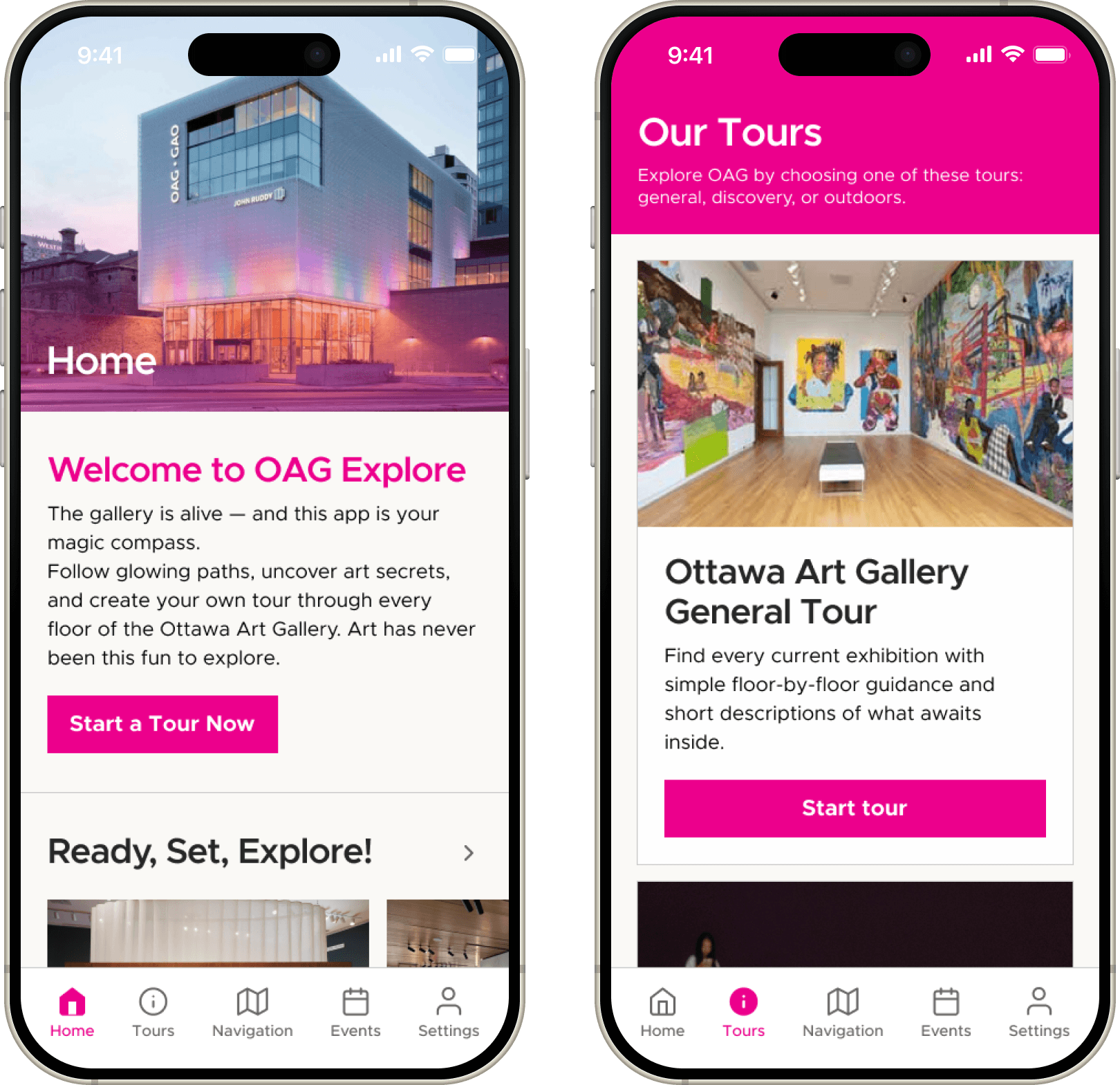 The Ottawa Art Gallery (OAG) is a welcoming public art space in downtown Ottawa, known for its contemporary exhibitions, community programs, and commitment to showcasing diverse Canadian artists. As part of its visitor experience, the OAG Explore app introduces a digital layer that supports engagement inside the gallery.
