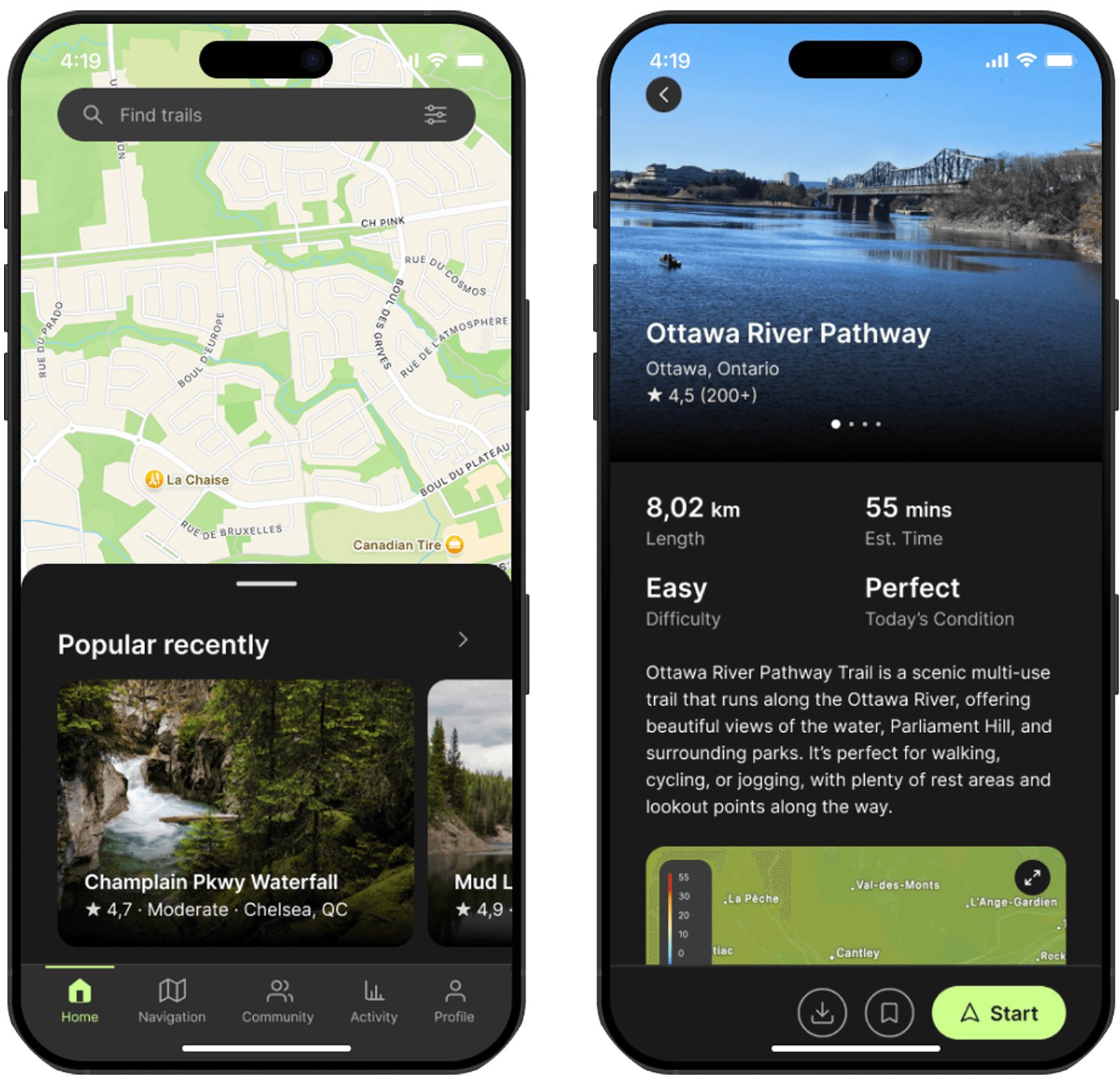 The Community page functions like a mini social platform for hikers. Its main purpose is to connect people who share the same passion for exploring the outdoors. Here, users can view others’ reviews, see trending trails, check what their friends are hiking, and join upcoming events.